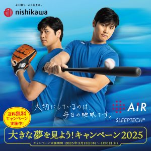 大きな夢を見よう! キャンペーン2025 [期間]3月13日(木) ~4月6日(日) [エアー]マットレス送料無料キャンペーン実施中! さらに[エアー]対象商品をご購入で#大谷翔平選手 グッズが抽選で当たるキャンペーン実施中!※詳しくは店舗まで