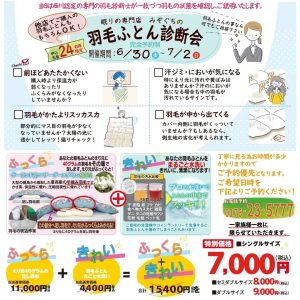 6月30日(金)~7月2日(日)まで羽毛ふとん診断会を開催致します!