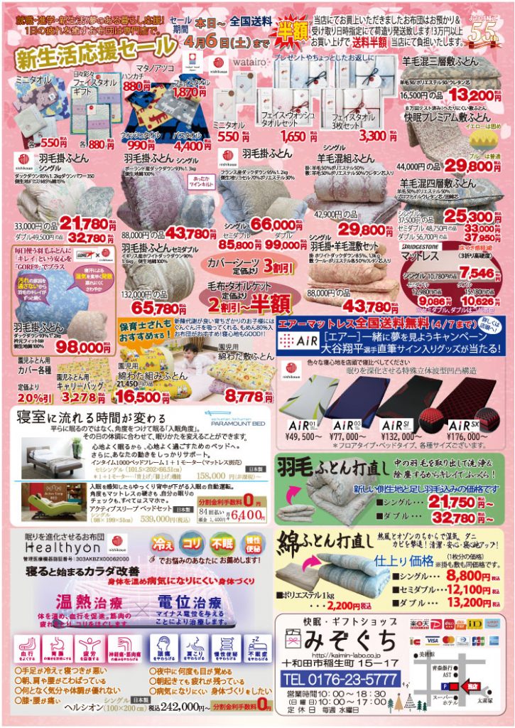 みぞぐちでは4月6日(土)まで3万円以上のお買上で