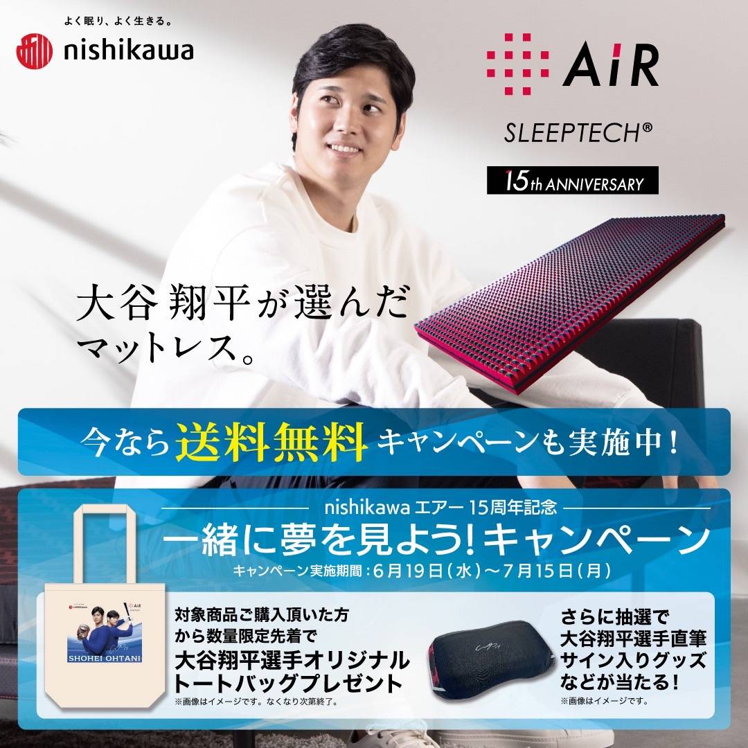 [ エアー] マットレスを体感いただき、nishikawa ID 登録 、又は[ エアー] 公式Instagram をフォローで、大谷翔平選手オリジナルクリアファイルプレゼント。
