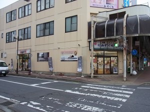 店舗はスーパーホテル十和田天然温泉様の道を挟んで隣です。クリーム色の3階建ての建物です