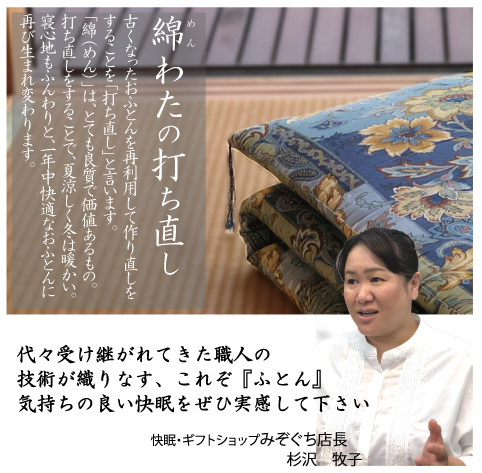 「綿ふとんの打ち直し」のご紹介をします。