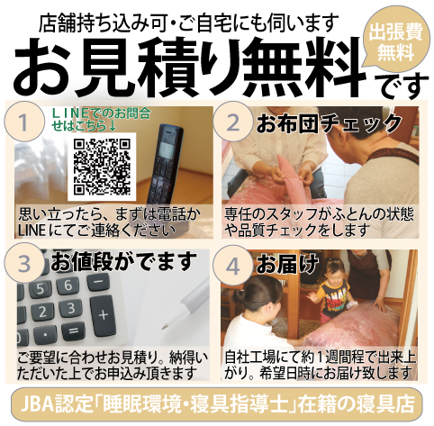 毎日使用するお布団で、概ね掛けふとんは4~5年、敷ふとんで3~4年で打ち直しをお薦めしています。