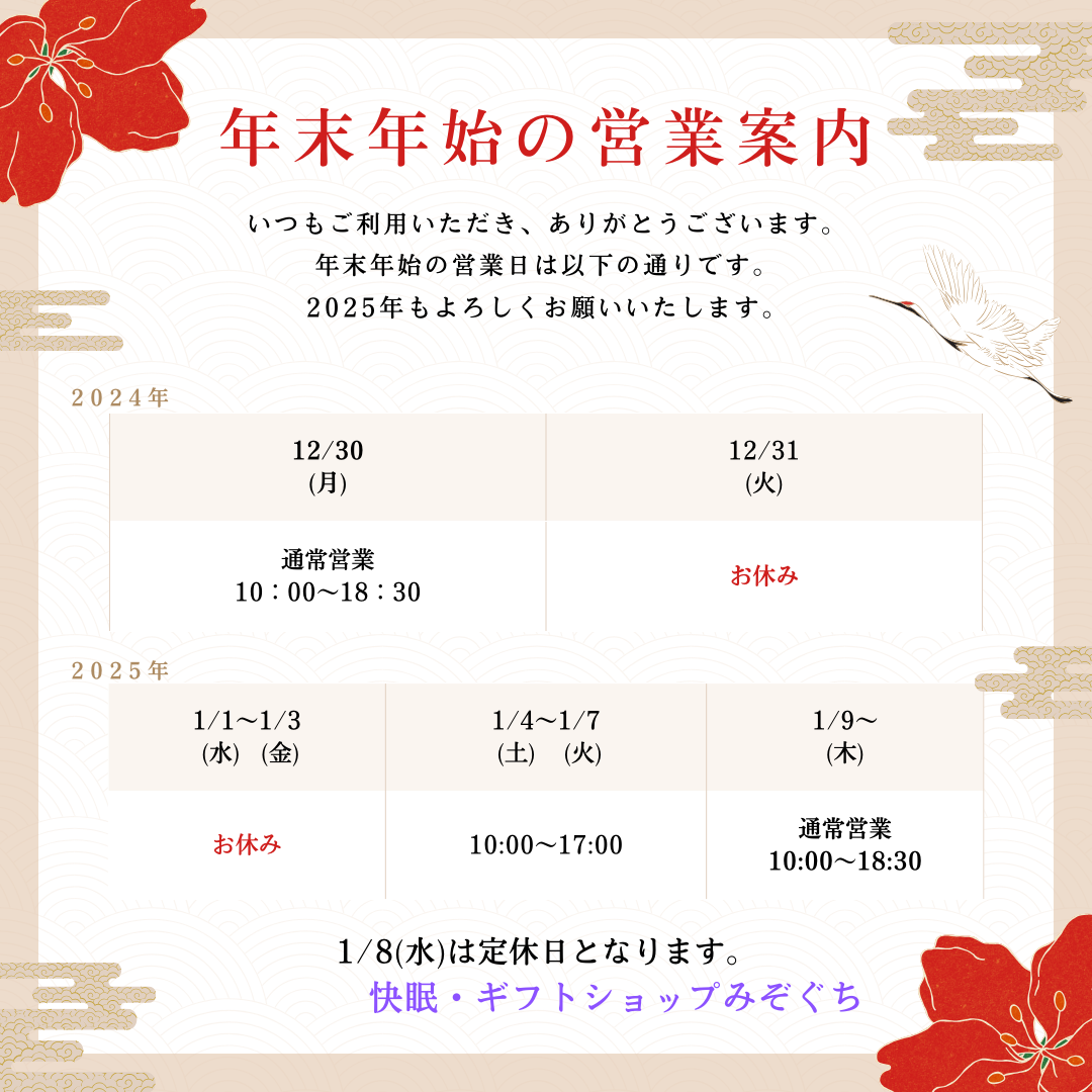 来年も皆様の快眠のお役にたてる様、スタッフ一同、一層努力してまいりますので、どうぞよろしくお願い申し上げます