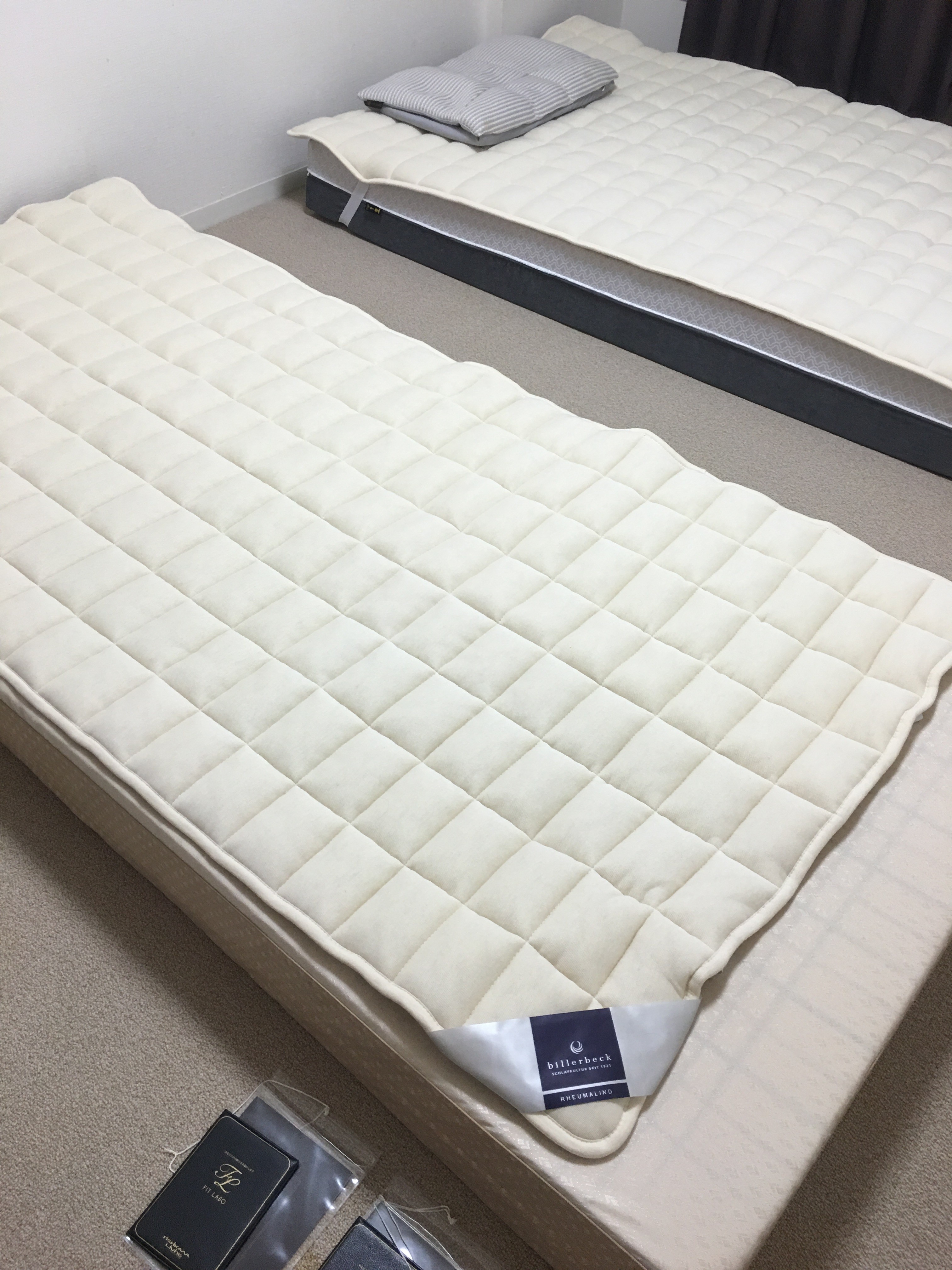 今回はそんなすらっと長身のお客様に、せっかくだからと通常より20㎝長い220㎝の長寸のオーダーマットレスにての納品です。そしてオーダーマットレスの上に温度と湿度の調整を上手にしてくれ、とっても快適な当店お薦めのビラベック社のウールパッドもご注文いただきました。(ウールパッドはロングサイズが無かったのですが、それ以上に機能性に優れているのでご了承の上、お買上げ下さいました。)