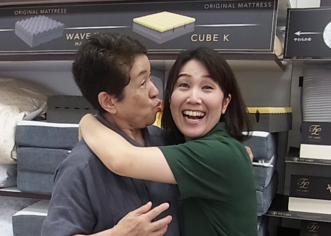 十和田市には無い高層階への搬入で、お手伝いまでして頂き、(本当に助かりました!感謝かんしゃで…ありがとうございました!)サポートバーなるものにて微調整等々、最後のご確認の為オーダーマットレスに寝ていただいたところ…