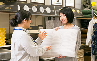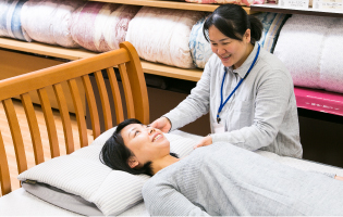 快眠マイスターが、お客様の体調(肩こり、腰痛、その他の体調)や眠りに関するお悩みをお伺いし、枕選びや寝具選びのご相談を承ります。