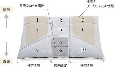 (2,5=まくらの中心部分で、頭と首それぞれの高さにフィット)
