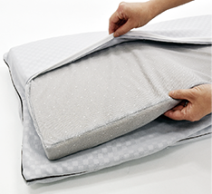 超マイクロファイバーで構成されるナチュラルソフトタッチな側生地を使用。吸汗性に優れ、乾くのが早いためいつも爽やかなパウダータッチ。 ベース層のウレタンフォームを取り外せば側生地・中材はお洗濯可能。長く清潔にお使いいただけます。