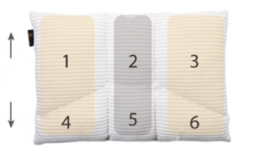 中材の部屋を細かく分割することで、お一人おひとりの頭部や頚椎の形状に合わせ細やかな調節が出来るようになりました。 さらに中材が動いて高さが変わってしまうことも軽減します。