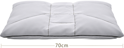 新素材デュオセルフォームのベース層と中材層の2層構造です。5㎜単位で高さを調整し、適度なクッション性と抗菌防臭加工の独自メッシュ構造の表地で頭を心地よく、さわやかに、やさしく支えます。